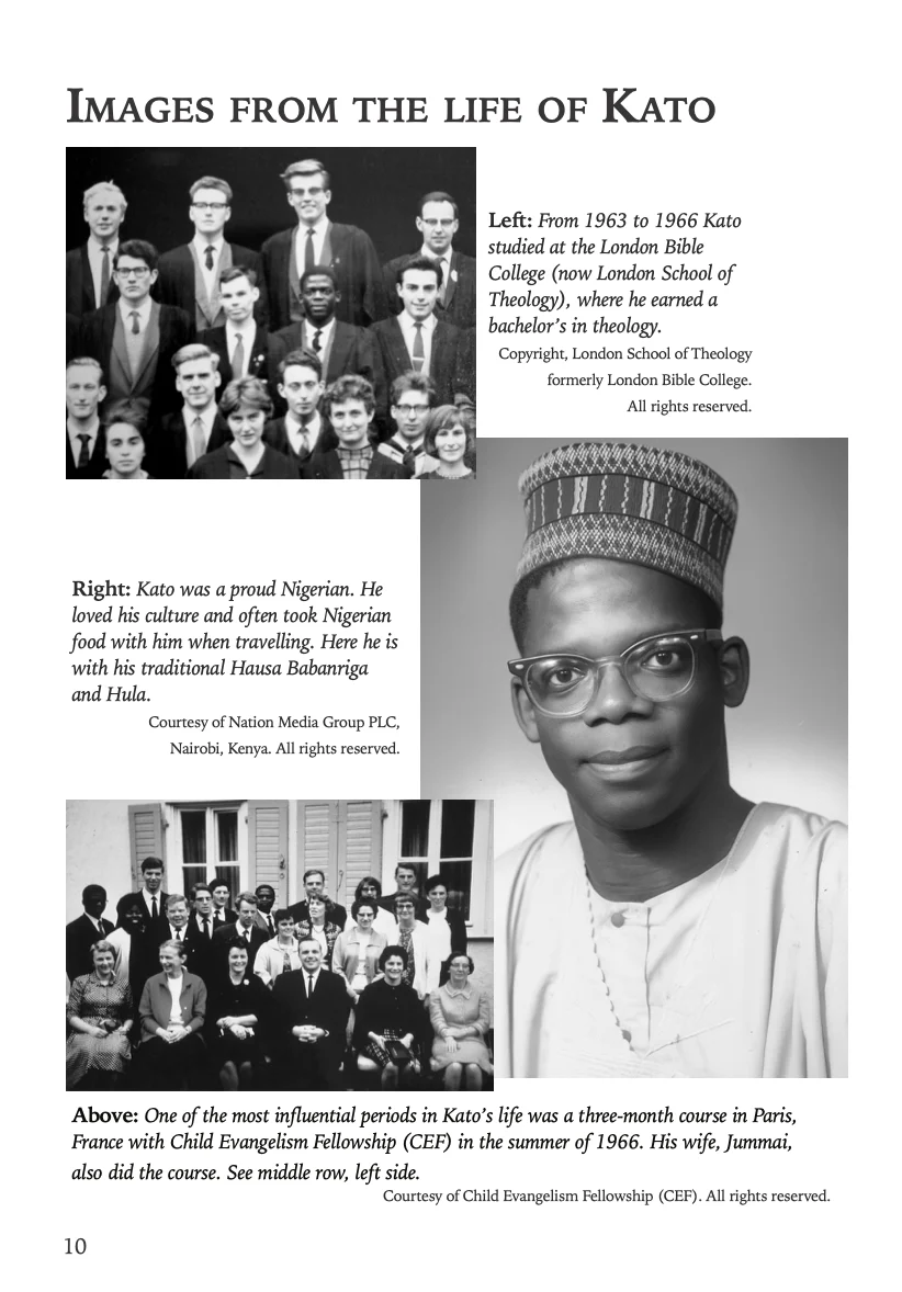 Included in this issue also is an account of Kato’s life (pages 6–9) and a deeper look into his Christian character and spiritual formation (pages 14–15). We include some of Kato’s writing, in his ten-point proposal for safeguarding biblical Christianity in Africa (pages 18–19), as well as a centre-page pull-out photo montage of the founder of Evangelical Theology in Africa.